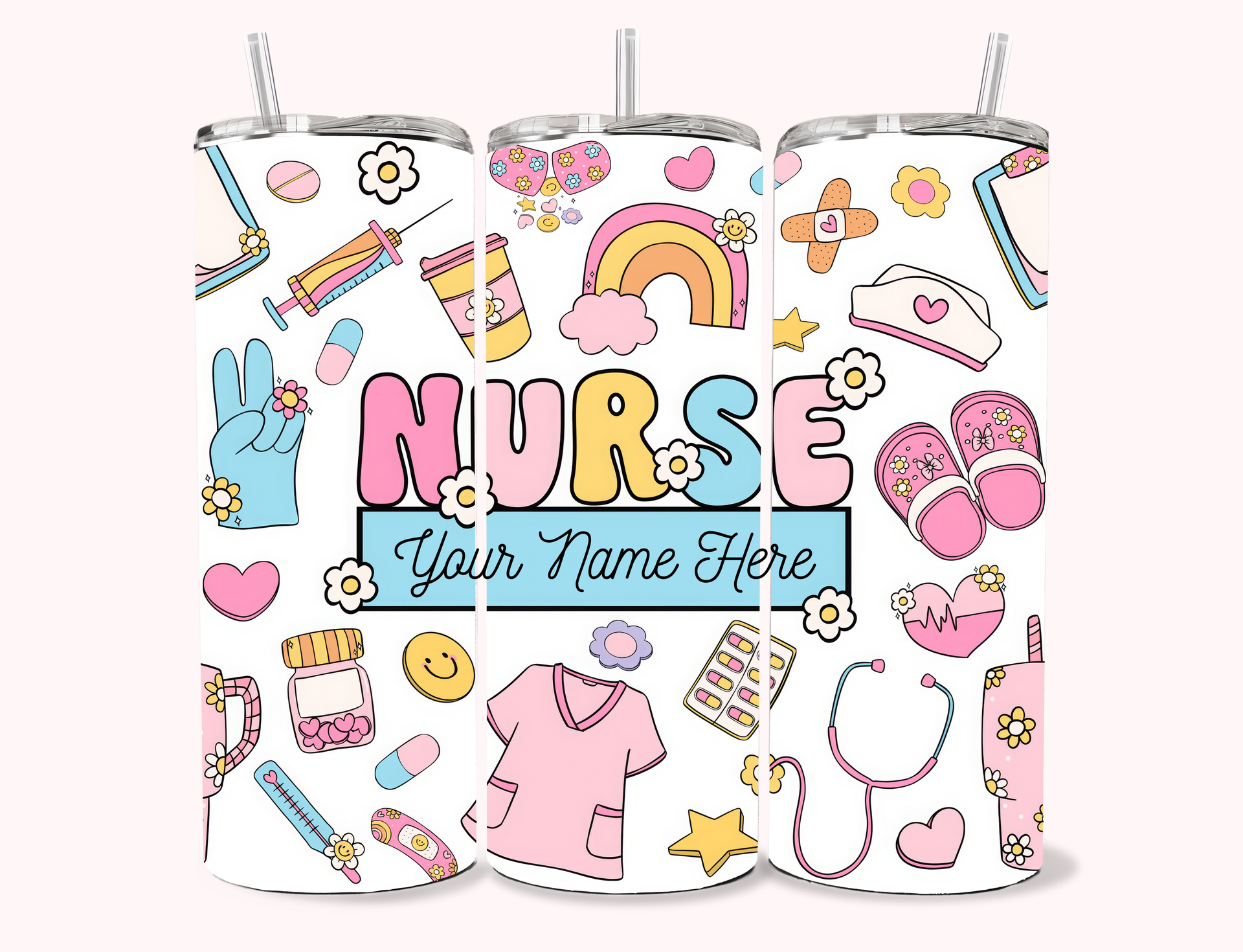 Stay hydrated in style with the Custom Name Nurse Tumbler from Nurse Krew! 💕 Designed for the hardworking nurse who deserves a little fun, this tumbler features pastel nurse icons — scrubs, syringes, hearts, and stethoscopes — and can be personalized with your name for that extra special touch.
