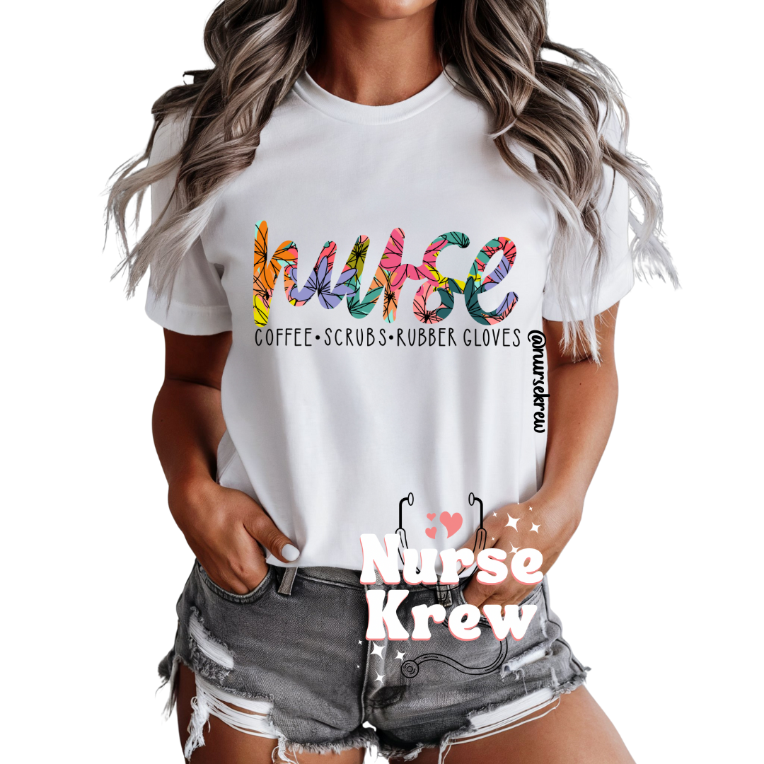 Because every shift starts with coffee, scrubs, and rubber gloves! ☕💉 The Floral Script Nurse Tee from Nurse Krew brings a colorful twist to your everyday nurse life. Featuring bold floral lettering and a playful saying that every healthcare pro can relate to, this shirt is a must-have for any nurse who loves bright, cheerful style.